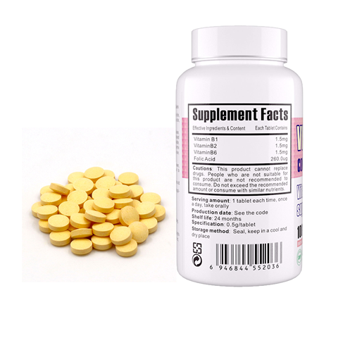 Meilleure vente Supplément de comprimé complexe de vitamine B avec marque privée disponible pour les adultes et les nouveau-nés